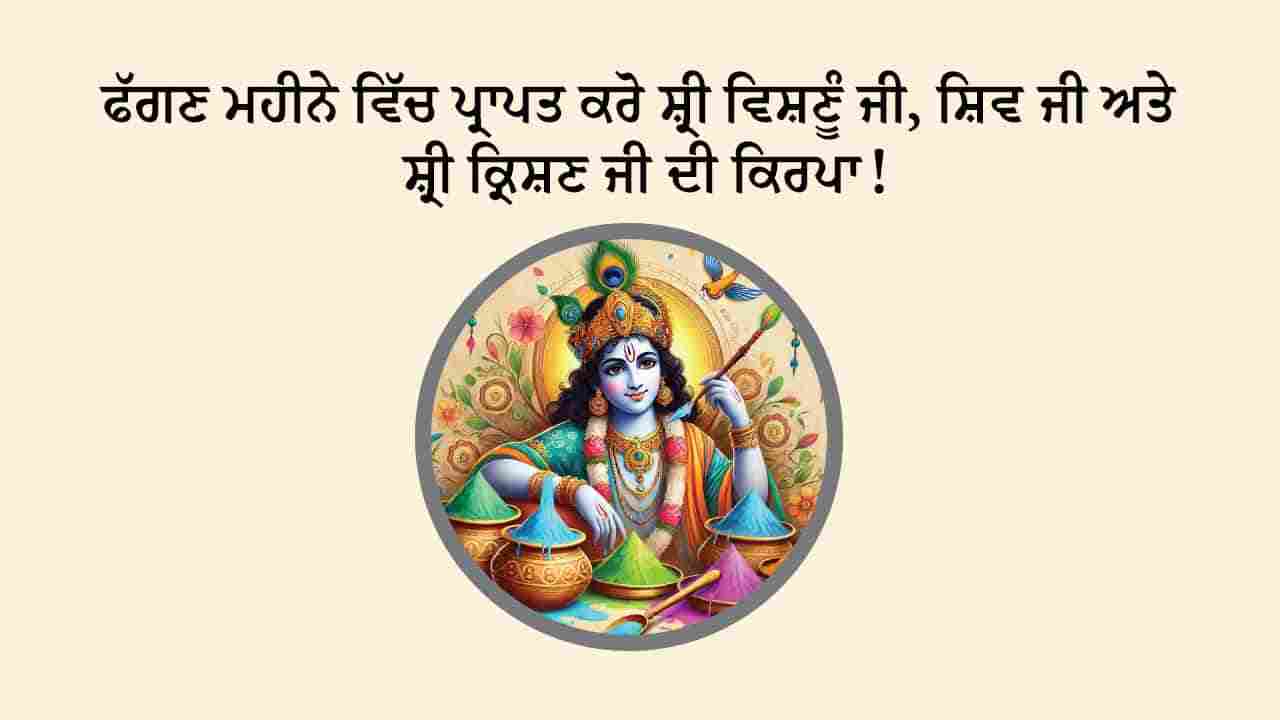 ਸਿਰਫ ਇਹੀ ਨਹੀਂ, ਫੱਗਣ ਦੇ ਮਹੀਨੇ ਵਿੱਚ ਪਿਆਰ ਅਤੇ ਖੁਸ਼ੀਆਂ ਦਾ ਤਿਓਹਾਰ ਹੋਲੀ ਵੀ ਮਨਾਇਆ ਜਾਂਦਾ ਹੈ। ਇਸ ਮਹੀਨੇ ਵਿੱਚ ਭਗਵਾਨ ਸ਼੍ਰੀ ਕ੍ਰਿਸ਼ਣ ਜੀ ਦੇ ਤਿੰਨ ਸਰੂਪਾਂ ਦੀ ਪੂਜਾ ਕਰਨ ਦਾ ਵਿਧਾਨ ਹੈ, ਜੋ ਇਸ ਪ੍ਰਕਾਰ ਹਨ: ਬਾਲ ਸਰੂਪ, ਯੁਵਕ ਸਰੂਪ ਅਤੇ ਗੁਰੂ ਕ੍ਰਿਸ਼ਣ ਦੇ ਸਰੂਪ ਵਿੱਚ।ਫੱਗਣ ਮਹੀਨਾ 2025 ਦੇ ਅਨੁਸਾਰ, ਫੱਗਣ ਦੇ ਮਹੀਨੇ ਵਿੱਚ ਜਿਹੜਾ ਭਗਤ ਸ਼੍ਰੀ ਕ੍ਰਿਸ਼ਣ ਜੀ ਦੀ ਸੱਚੇ ਮਨ ਅਤੇ ਭਗਤੀ-ਭਾਵ ਨਾਲ ਪੂਜਾ ਕਰਦਾ ਹੈ, ਉਸ ਦੀਆਂ ਸਾਰੀਆਂ ਇੱਛਾਵਾਂ ਪੂਰੀਆਂ ਹੁੰਦੀਆਂ ਹਨ।