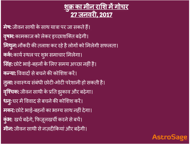 1. शुक्र का मीन राशि में गोचर कब होगा?
