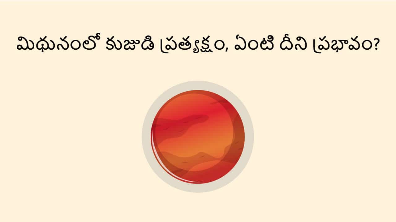 - మిథునరాశిలో కుజుడు ప్రత్యక్షంగా ఉండటం వల్ల ప్రభుత్వం మరియు దాని ప్రయత్నాలు లాభిస్తాయి. ప్రభుత్వం తన అధికారాన్ని మరియు కారణాన్ని నిలుపుకుంటూ కొంత దూకుడుగా వ్యవహరిస్తుంది.