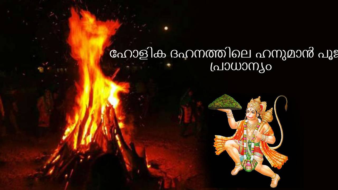 ഹോളിക ദഹന രാത്രിയിൽ പല സ്ഥലങ്ങളിലും ഹനുമാനെ പൂജിക്കുന്നത് വളരെ പ്രാധാന്യമർഹിക്കുന്നു. ഈ ദിവസം ഹനുമാനെ പൂജിച്ചാൽ ഒരു വ്യക്തിക്ക് എല്ലാത്തരം കഷ്ടപ്പാടുകളിൽ നിന്നും, പാപങ്ങളിൽ നിന്നും മുക്തി ലഭിക്കുമെന്നാണ് വിശ്വാസം. ജ്യോതിഷ പ്രകാരം പുതുവർഷത്തിലെ രാജാവും മന്ത്രിയും ചൊവ്വ ഗ്രഹമാണെന്ന് പറയപ്പെടുന്നു. ചൊവ്വയുടെ ഭരണാധികാരി ഹനുമാൻ ആണ്. ഈ സാഹചര്യത്തിൽ, ഈ ദിവസം ഭഗവാൻ ഹനുമാനെ പൂജിച്ചാൽ, അത് ഐശ്വര്യപ്രദമായി കണക്കാക്കപ്പെടുന്നു.