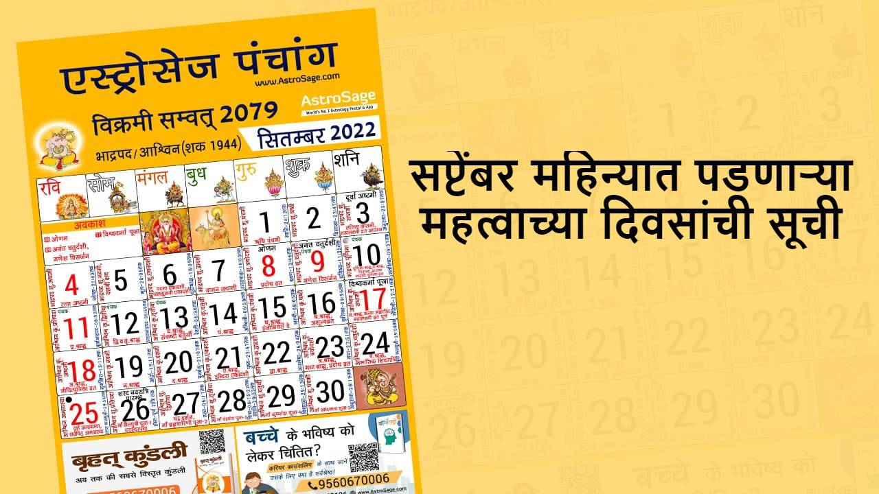 - सप्टेंबरमध्ये कोणते महत्त्वाचे व्रत आणि सण होणार आहेत, याची माहिती आम्ही तुम्हाला या खास ब्लॉगच्या माध्यमातून देत आहोत.