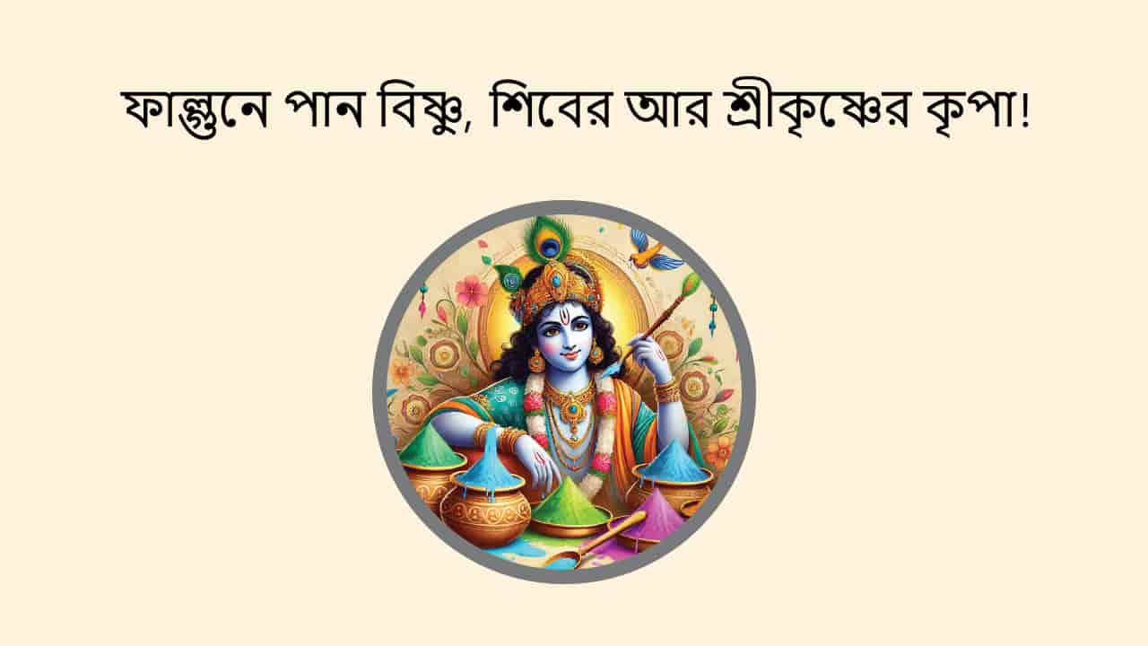 - ফাল্গুন মাসে ভগবান শ্রীকৃষ্ণের পূজো করা শুভ হয়ে থাকে। এই সময় আপনি আবির এবং গুলাল রঙ দিয়ে ভগবান শ্রীকৃষ্ণের পূজা করুন। এতে করে আপনার স্বভাব থেকে বিরক্তি দূর হয় এবং আপনি রাগ নিয়ন্ত্রণ করতে সক্ষম হন। এছাড়াও, শ্রীকৃষ্ণের আশীর্বাদে, একজন ব্যক্তি মনপছন্দ জীবনসঙ্গী পান।