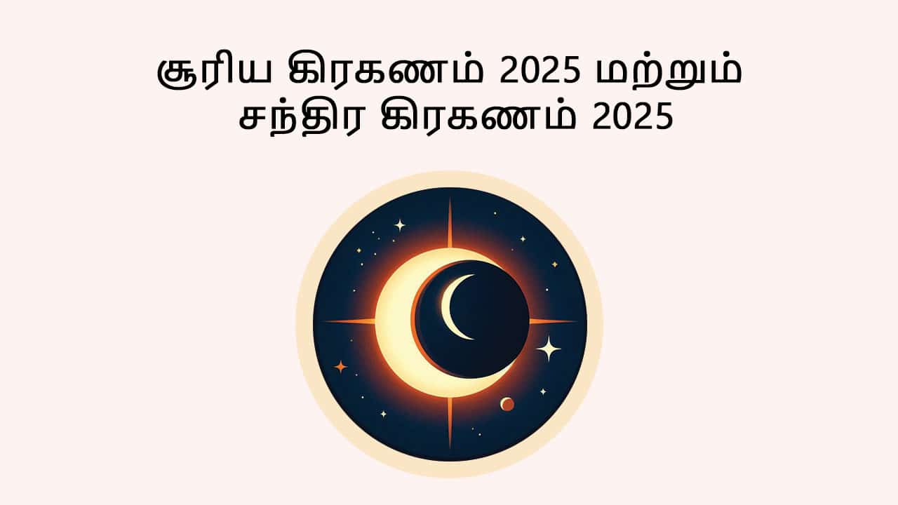 ஆஸ்ட்ரோசேஜின் இந்த கட்டுரையின் மூலம், கிரகணம் 2025 ஆம் ஆண்டில் நிகழும் பல்வேறு சூரிய கிரகணங்கள் மற்றும் சந்திர கிரகணங்களைப் பற்றி நீங்கள் அறிந்து கொள்வீர்கள். 2025 ஆம் ஆண்டின் அனைத்து கிரகணங்களைப் பற்றிய அனைத்து வகையான தகவல்களையும் எங்கள் வாசகர்கள் அனைவருக்கும் புத்தாண்டு 2025 நல்வாழ்த்துக்களுடன் வழங்குகிறோம். இந்த கிரகணம் கட்டுரையில், 2025 ஆம் ஆண்டில் எத்தனை கிரகணங்கள் ஏற்படும். இவற்றில் எத்தனை சூரிய கிரகணங்கள் மற்றும் எத்தனை சந்திர கிரகணங்கள். இவற்றில் எத்தனை முழு கிரகணங்கள் மற்றும் எத்தனை கிரகணங்கள் இருக்கும் என்பதை அறிய உங்களுக்கு வாய்ப்பு கிடைக்கும்.பகுதி அல்லது வளைய கிரகணங்கள் பகுதி கிரகணம் அல்லது பெனும்ப்ரா இருக்கும். இதனுடன், 2025 ஆம் ஆண்டில் நிகழும் அனைத்து கிரகணங்களும், அவை எந்த தேதி மற்றும் நேரத்தில் தொடங்கும் எந்த நேரத்தில் முடிவடையும் என்பதை அறியும் வாய்ப்பைப் பெறுவீர்கள். உலகின் எந்தப் பகுதிகளில் அது தெரியும் அதாவது புலப்படும் மதிப்பு இருக்கும். குறிப்பாக இந்தியாவில் அவை காணப்படுமா இல்லையா அந்த கிரகணங்களின் சூதக் காலம் என்ன கிரகணங்கள். சூரிய கிரகணம் என்றால் என்ன சந்திர கிரகணம் என்றால் என்ன அந்த கிரகணங்களின் போது நாம் என்ன முன்னெச்சரிக்கை நடவடிக்கைகளை எடுக்க வேண்டும். கிரகணத்தின் அசுப விளைவுகளைத் தவிர்க்க என்ன பரிகாரங்களை எடுக்க வேண்டும்.