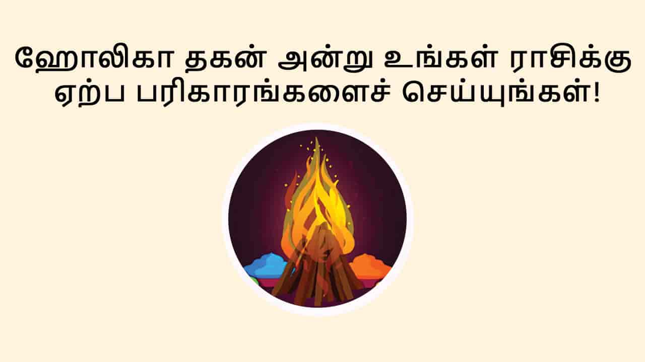துலாம் ராசிக்காரர்கள் ஹோலிகா தஹனத்தின் போது, சுக்கிர கிரகத்துடன் தொடர்புடைய அரிசி, சர்க்கரை அல்லது சீஸ் போன்றவற்றை நெருப்பில் போடலாம்.