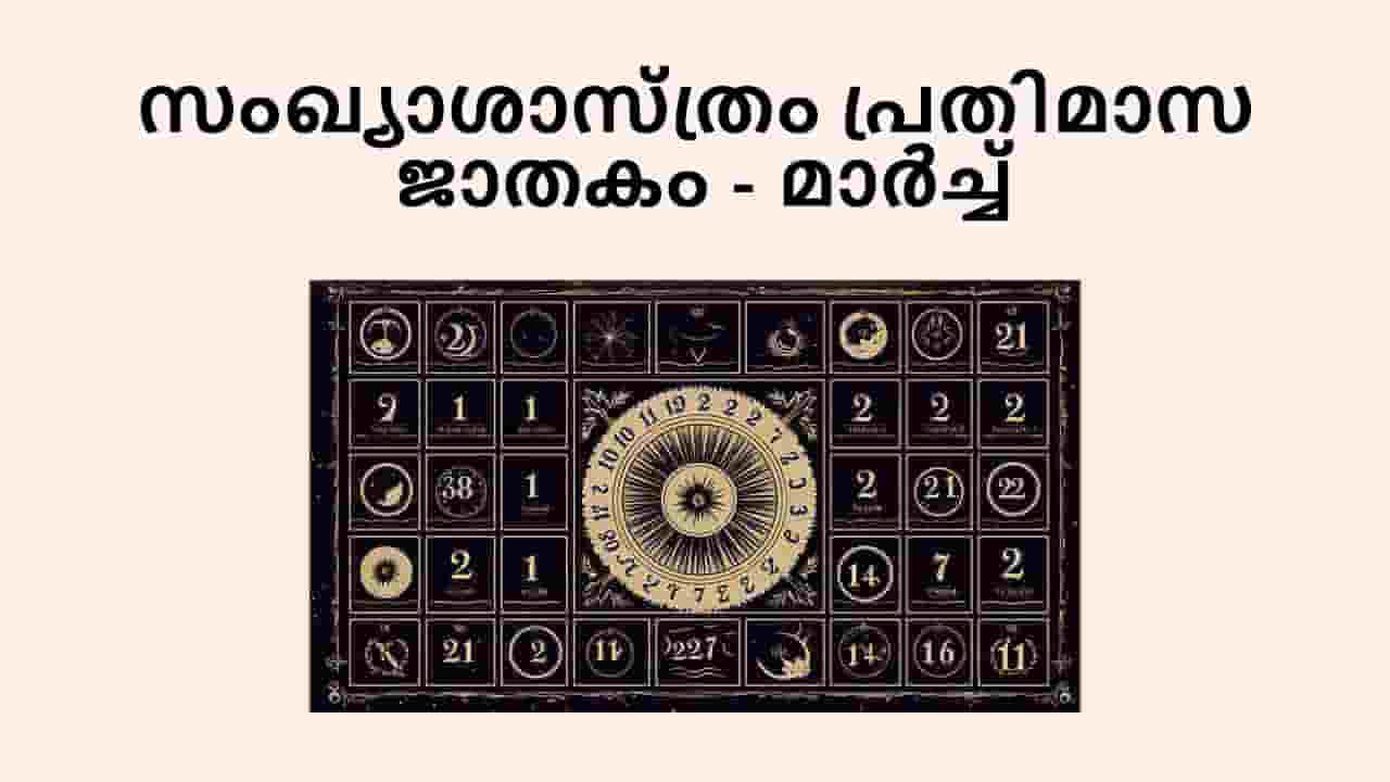 സംഖ്യാശാസ്ത്ര പ്രതിമാസ ജാതകം മാർച്ച് 2025: മാർച്ച് മാസം വർഷത്തിലെ മൂന്നാമത്തെ മാസമാണ്, അതിനാൽ സംഖ്യാശാസ്ത്രം അനുസരിച്ച് ഇതിന് മൂന്നാം സംഖ്യയുടെ സ്വാധീനമുണ്ട്.ഈ മാസംവ്യാഴം ഗ്രഹത്തെ കൂടുതൽ സ്വാധീനിക്കാൻ പോകുന്നു. ഈ വർഷത്തെ എണ്ണം 9 ആണെന്നും അത്തരമൊരു സാഹചര്യത്തിൽ വ്യാഴം ഒഴികെ,ചൊവ്വയ്ക്ക് 2025 മാർച്ചിൽ വലിയ സ്വാധീനമുണ്ടെന്നും വായനക്കാരെ അറിയിക്കാം.എന്നിരുന്നാലും, വ്യാഴവും ചൊവ്വയും മൂലങ്ക് സംഖ്യ അനുസരിച്ച് ആളുകളിൽ വൈവിധ്യമാർന്ന സ്വാധീനം ചെലുത്തും.എന്നാൽ, 2025 മാർച്ച് കാലയളവ് ധനകാര്യം, വിദ്യാഭ്യാസം, സാങ്കേതികവിദ്യ, പൊതുവികാരം മുതലായവയുമായി ബന്ധപ്പെട്ട കാര്യങ്ങൾക്ക് പ്രത്യേകമാണ്.വിവിധ മൂലാങ്കുകൾക്ക് 2025 മാർച്ച് മാസം എങ്ങനെയായിരിക്കുമെന്ന് നമുക്ക് ഇപ്പോൾ പരിശോധിക്കാം -