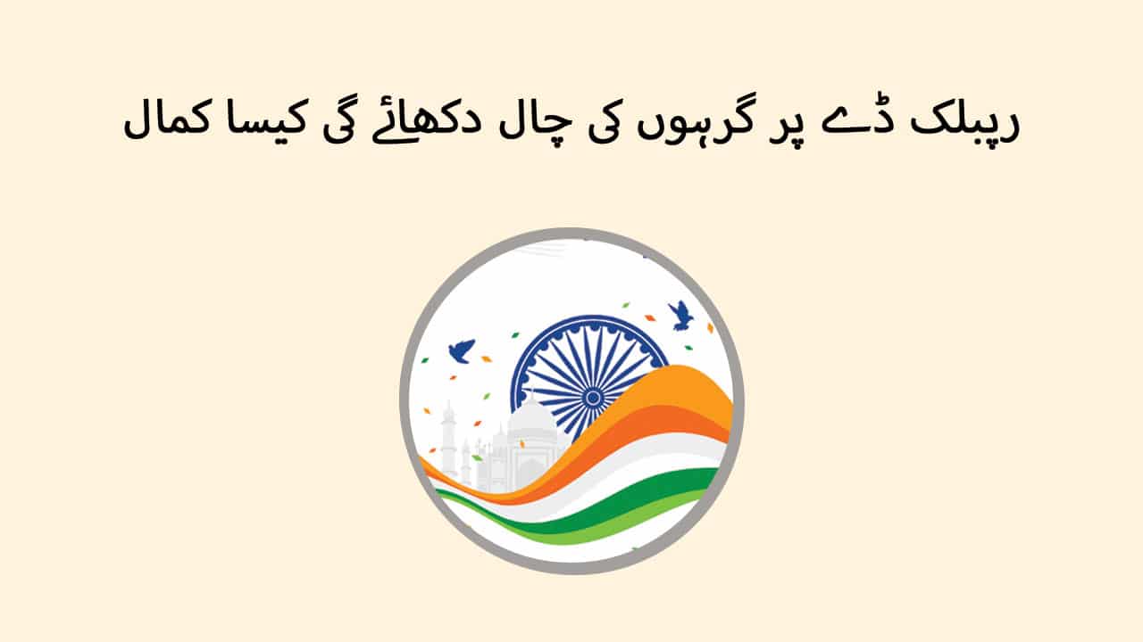 ریبلک کے 76 ویں سال کی کنڈلی میں نویں گھر میں زحل اپنے ہی دوست زہرہ کے ساتھ جلوہ افروز ہیں۔ جس میں کورٹ، سکیمیں، ترقی، کمیونکیشن وغیرہ میدان میں سرکار زبردست ڈھانچے کو مضبوط بنانے کی کوشش کرے گی۔ اور بہت سی سکیموں کو بہتر طریقہ سے چلانے کی کوشش مسلسل کیا جاتا رہے گا۔ یوم جمہوریہ 2025 کے پیش ںظر، اس دوان فاسٹ ٹرین بھی چلائی جائیں گے۔ اور بہت سے امپلائمنٹ کے موقع بھی پیدا ہوں گے۔ سرکار اپنی پبلسٹی بڑھانے کے لیے عام عوام کے درمیان انتظامیہ کا بل دے گی۔ اور ان تمام کاموں میں پورا زور لگا دے گی۔