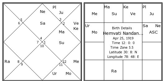 Hemvati Nandan Bahuguna's Birth Chart / Kundali