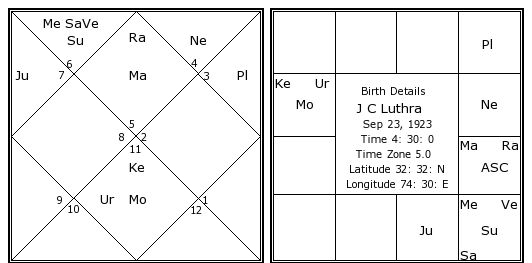 J C Luthra's Birth Chart / Kundali