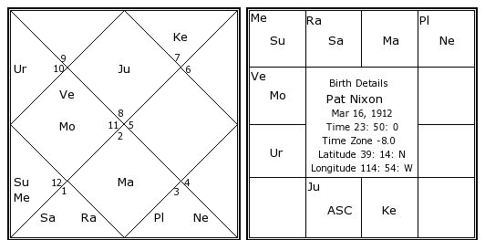 Pat Nixon's Birth Chart / Kundali