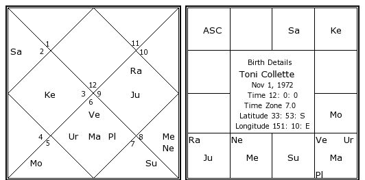 Toni Collette's Birth Chart / Kundali