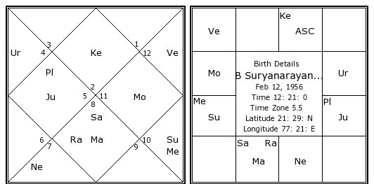 B Suryanarayana Rao's Birth Chart / Kundali