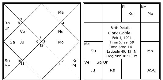 Clark Gable's Birth Chart / Kundali