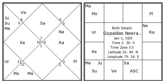 Gopaldas Neeraj's Birth Chart / Kundali