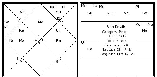 Gregory Peck's Birth Chart / Kundali