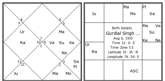 Gurdial Singh Dhillon's Birth Chart / Kundali