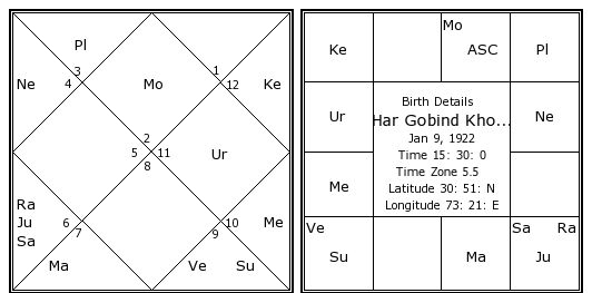 Har Gobind Khorana's Birth Chart / Kundali