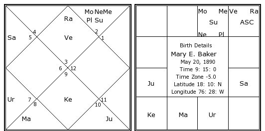 Mary E. Baker's Birth Chart / Kundali