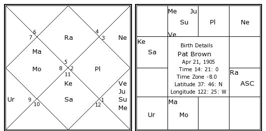 Pat Brown's Birth Chart / Kundali