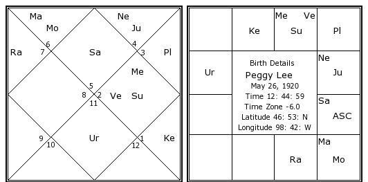 Peggy Lee's Birth Chart / Kundali