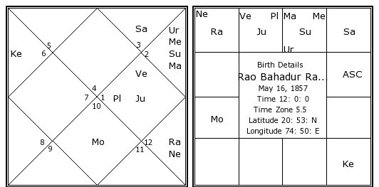 Rao Bahadur Raghunath Narasinha Mudholkar's Horoscope