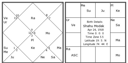 Shahu Modak's Birth Chart / Kundali