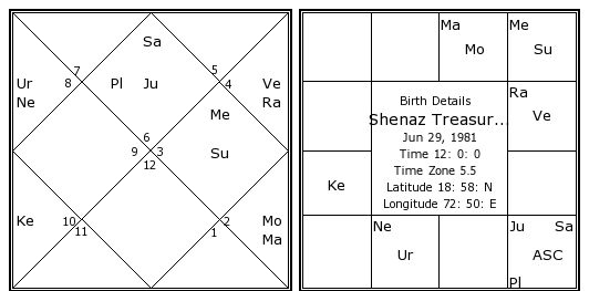 Shenaz Treasurywala's Birth Chart / Kundali