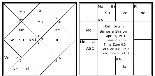Simone Simon's Birth Chart / Kundali
