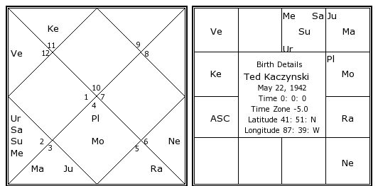 Ted Kaczynski's Birth Chart / Kundali
