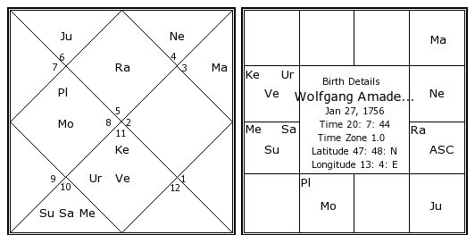 Wolfgang Amadeus Mozart's Birth Chart / Kundali