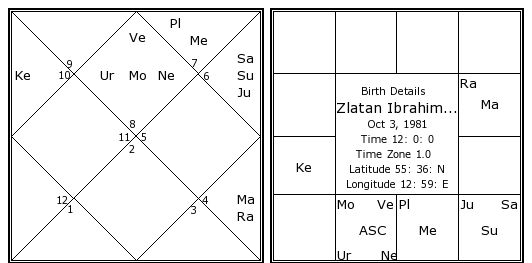 Zlatan Ibrahimovic's Birth Chart / Kundali