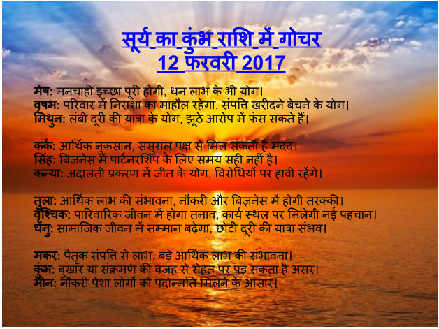 सूर्य का कुंभ राशि में गोचर (13 फरवरी 2024)