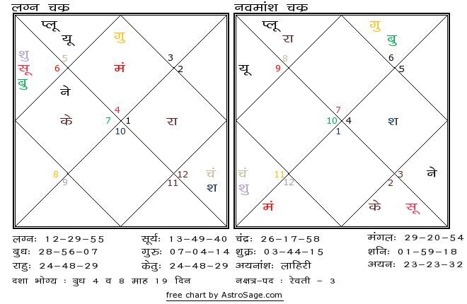 The best part about this horoscope is that all the planets either are placed in trikona, Kendra or upachya houses. No planets present in dusthana, in rashi chart, makes it a very interesting horoscope.