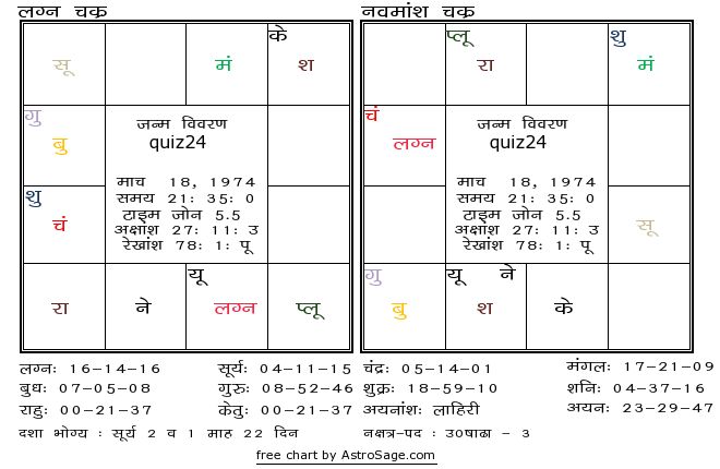 कुण्डली का पूरा विवरण देखने के लिए दिए हुए लिंक पर जाइये - - http://k.astrosage.com/quiz24