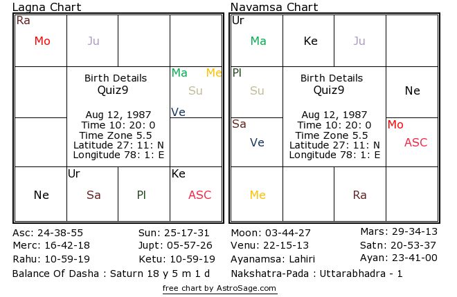 Detailed chart (Kundli) is shared on following URL - http://k.astrosage.com/quiz9