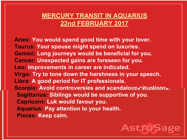 Due to the above, you could be more interested in doing speculation and gain via inheritance duringMercury Transit In Aquarius.