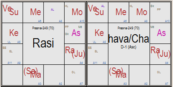 Here the sub lord of 6th house is Saturn, he is in 5th house in the star of Mercury and sub division of Sun. Mercury is in 10th house whereas Sun is in 9th house in the star of Mercury, therefore Saturn is strong for 5-9-10 houses.