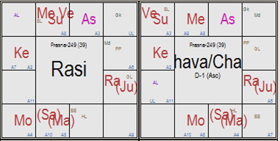 Here the sub lord of 6th house is Saturn, he is in 6th house in the star of Mercury and sub division of Sun. Mercury is in 12th house whereas Sun is in 11th house in the star of Venus, therefore Saturn is strong for 6-11 houses.
