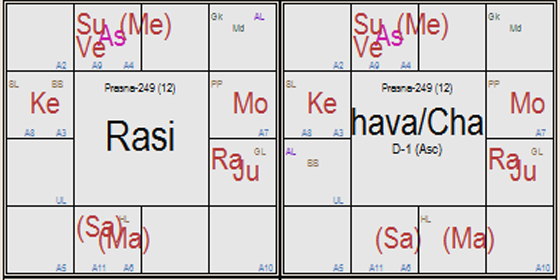 Here the sub lord of 6th house is Moon, he is in 4th house in the star of Saturn and sub division of Sun. Sun in the star of Venus therefore Moon is connected with 1st house.