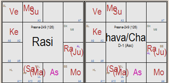 The sub lord of 6th house is Rahu; he is in 11th house in the star of Venus and sub division of Mercury. Venus is in 6th house in whereas Mercury is in 7th house in the star of Venus. Therefore Rahu is strong for 6th House.