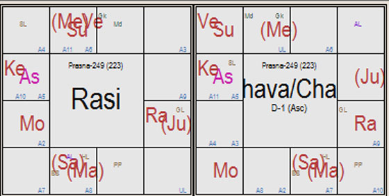 The sub lord of 6th house is Ketu; he is in 1st house in the star of Jupiter and sub division of Mercury. Mercury is in 3rd house in the star of Sun. Therefore Kethu is strong for 2-3 Houses.