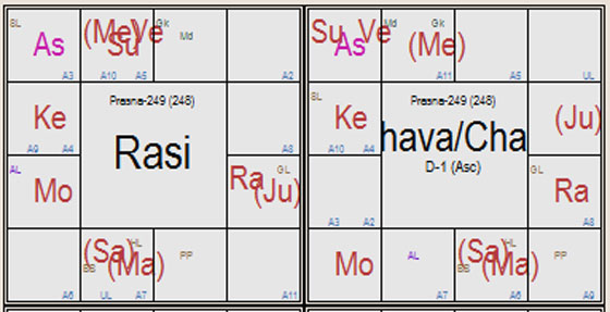 Here the sub lord of 6th house is Rahu, he is in 6th house in the star of Venus and sub division of Mercury. Mercury is in the star of Sun in 1st house. Therefore Rahu is connected with 1-6 houses.