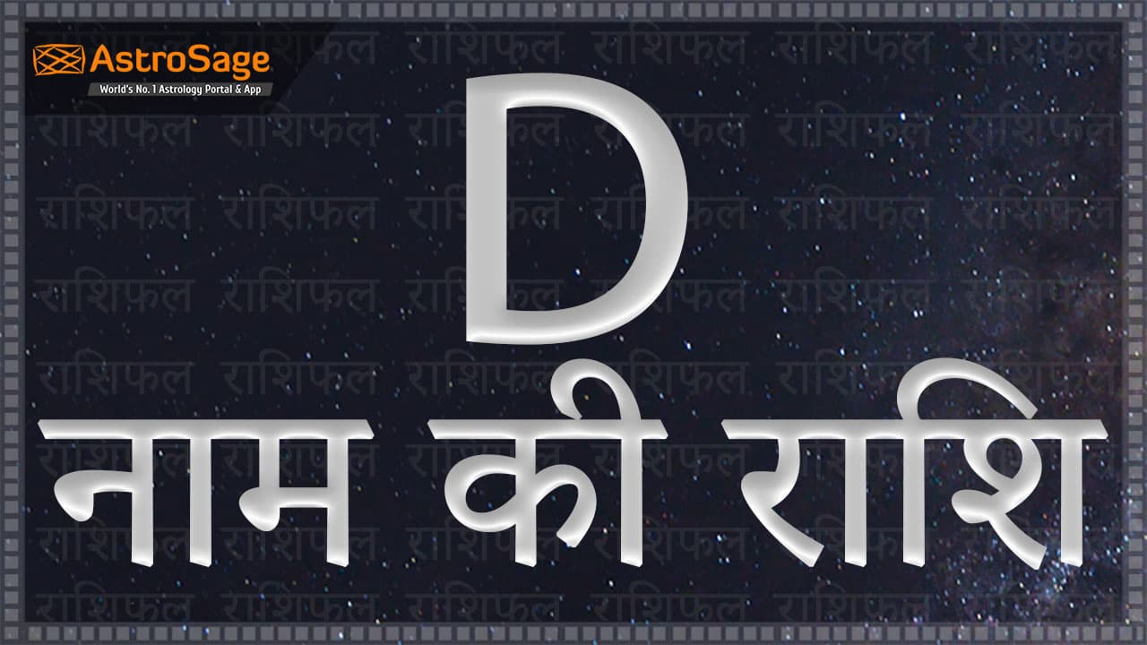 एस्ट्रोसेज के इस लेख में हम आपको बताएंगे D नाम की राशि वाले (हिंदी में दी, दू, दो, धा) लोगों की क्या विशेषताएं होती हैं। उनका स्वभाव कैसा होता है। वे अपने करियर में किस प्रकार का प्रदर्शन करते हैं। आमतौर पर उनका स्वास्थ्य कैसा रहता है। प्रेम संबंध के मामले में यह कैसे होते हैं। व्यक्तिगत जीवन में उनकी क्या भूमिका रहती है।