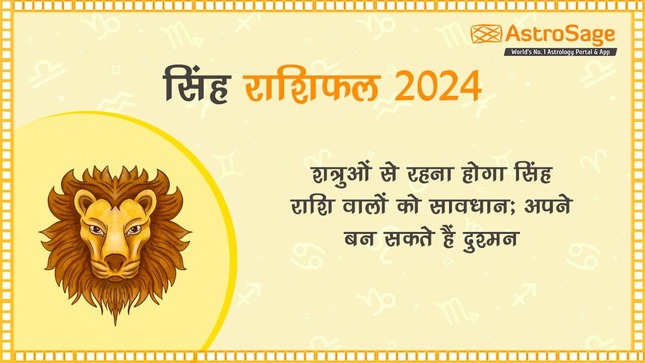 हम आशा करते हैं कि सिंह राशिफल 2024 के इस विशेष लेख की सहायता से आप नए साल में नए लक्ष्य तय करें और जीवन में किसी भी प्रकार के जोख़िम लेने से पहले एक बार ज्योतिषीय सलाह अवश्य लें क्योंकि बाद में पछताने से अच्छा है कि आप जानकारी पाकर पहले से ही सतर्क हो जाएं और किसी भी चुनौती का डटकर सामना कर पाएँ। तो चलिए अधिक जानकारी पाने के लिए पढ़ें सिंह राशिफल 2024 और जानें अपना भविष्यफल व अपनी समस्याओं को दूर करने के विशेष उपाय के बारे में भी यहां चर्चा की जा रही है। यक़ीन मानिए हमारे द्वारा बताए गए उपायों से आपका आने वाला वर्ष न केवल काफी सुख शांति से परिपूर्ण रहेगा बल्कि इस वर्ष आपका जीवन भी ख़ुशियों से भरपूर हो जाएगा। सभी जानकारी के लिए लेख को अंत तक जरूर पढ़ें।