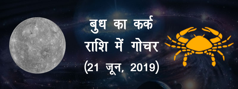 बुध ग्रह ने 21 जून 2019, शुक्रवार प्रातः 02:19 बजे कर्क राशि में गोचर किया। जिसके बाद इसी राशि में 8 जुलाई को वक्री हो गया और 30 जुलाई 2019, मंगलवार दोपहर 12:25 बजे राशि से निकल कर वक्री अवस्था में मिथुन राशि में वापिस लौट आया। जहाँ अब यह 1 अगस्त को वक्री से मार्गी होकर, फिर से 3 अगस्त शनिवार को सुबह 05:44 बजे पुनः कर्क राशि में प्रवेश करेगा। इस अवधि में बुध के गोचर का असर सभी 12 राशियों पर देखने को मिलेगा।