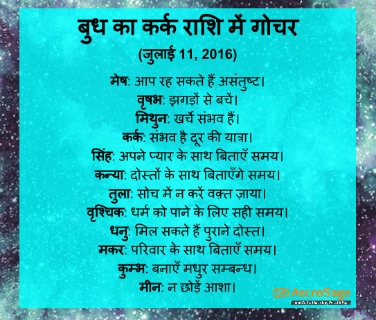 बुध का कर्क राशि में गोचर (03 अगस्त, 2019)