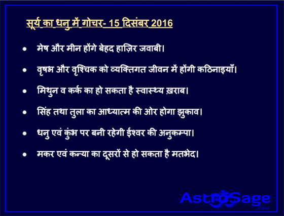 सूर्य का धनु राशि में गोचर : 16 दिसंबर 2019