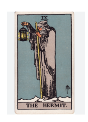 The image on this card -- an old man -- represents a person who is weary of the outer world. When he retreats to explore the mysteries of his inner life, he becomes open and innocent like a child. Virgos are perfectionist and focused. They can sometimes forget the world around them and become too goal centered which is represented by the use of the dull grey colour all over the card with tints of other pastels as per the colour theory.