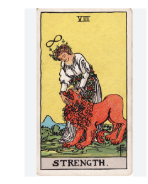 The Strength card represents your physical strength -- like that of the mighty Lion on your card -- as well as your emotional, mental and spiritual prowess. The Yellow and orange colour majorly showcase courage, power and inner strength just like the Leos. The colour yellow shows happy, benevolent personality.
