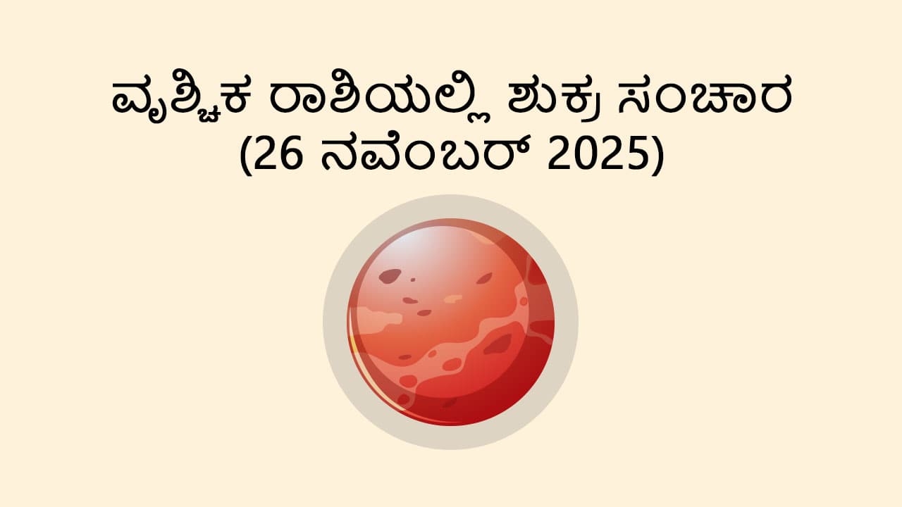 ಶುಕ್ರನು ನವೆಂಬರ್ 26, 2025 ರಂದು ಬೆಳಿಗ್ಗೆ 11:10ಕ್ಕೆ ವೃಶ್ಚಿಕ ರಾಶಿಯಲ್ಲಿ ಸಂಚಾರ ಮಾಡುತ್ತಾನೆ.