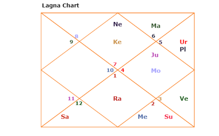 Saturn, the lord of Pushya is placed in the 6th house (competition, debt, enemies). The reason she was always ahead of her competitor actresses of the 90’s is the placement of Saturn in Pisces. The formation of Gaj Kesari yoga is the reason she attained great fame during the whole span of her career and she enjoyed a rock solid career.